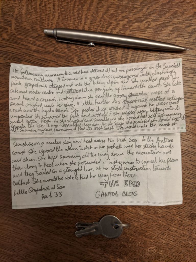 Listening notes: Search out We Could Send Letters by Aztec Camera. It’s the B side of indie hit Just Like Gold 1981, Postcard Records, Scotland (POSTCARD81-3). Roddy Frame recorded this at the age of 16. I hadn’t heard it before tonight. I was looking for something from Postcard Records because I wanted to avoid anything too obvious (e.g. Treacherous by Britney Spears).