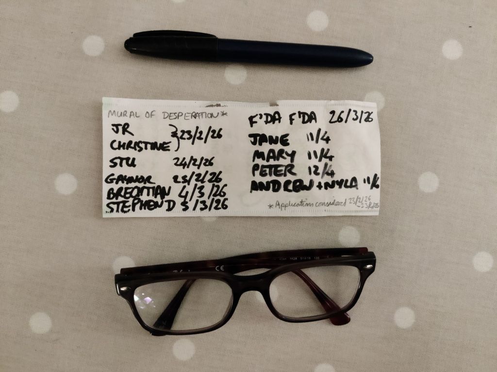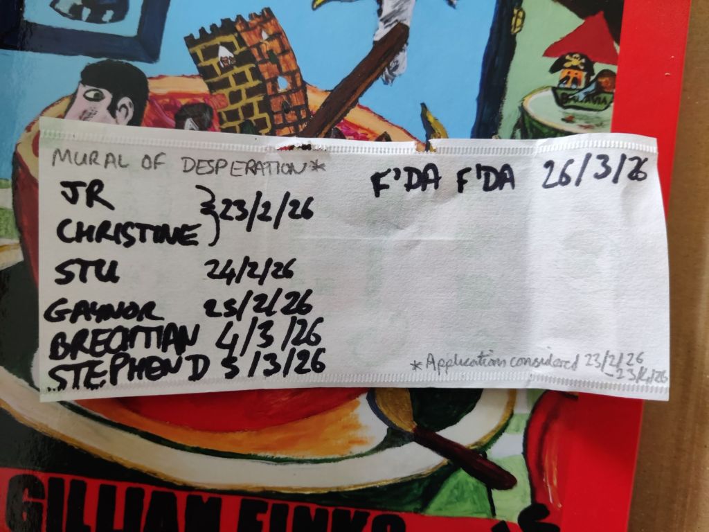 Applications to join the Mural of Desperation – thereby earning the hardback magnum opus – must be received by 23 April (the only exception is somebody who shares his birthday with Bill Drummond the following week).