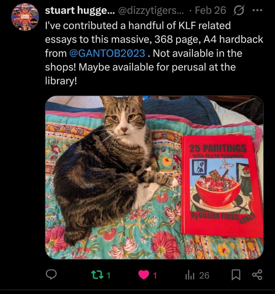 I’m not feeling as desperate to see it as I was when I learned, from a reader, that I’d contributed to Bill Drummond’s ‘Biog 2024’/’Winning Is For Losers’ novella (Bill hadn’t passed that information on, so I had to chase down a copy via various Facebook groups).