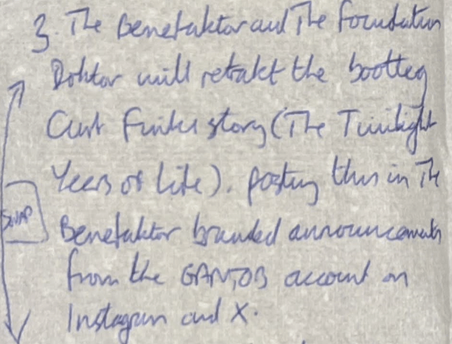 - The Benefaktor and The Foundation Doktor will retrakt the bootleg Curt Finks story (The Twilight Years of Life), posting this in The Benefaktor branded announcements from the GANTOB2023 account on Instagram and X.