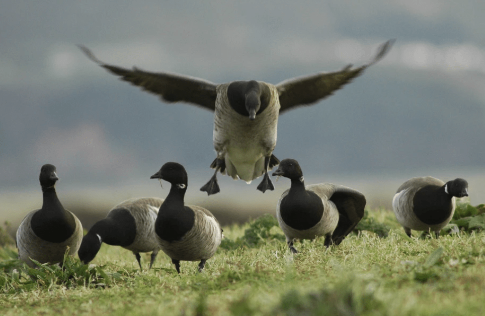 Muir, attending a conference in London early November 1988, had overheard a conversation during a refreshment break. Two elderly ornithologists were discussing a change in the behaviour of a group of local Brent Geese. They knew from the meticulous records of the local amateur birdwatching society that these geese migrated to the same spot in the East Anglian fens every year. Used to a bit of rough and tumble to tag and document these birds, this year they had been struck by their docile nature. “Dazed” said the reports. Standing around or sometimes just sitting, wings by their side, head moving with their pulse.
