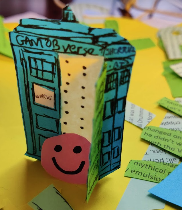 The Foundation Doktor is Christmas shopping but little has caught her eye. Following her grandfather’s dealings with the writer GANTOB, she’s recently bought a copy of The Justified Ancients Of Mu Mu’s novel ‘2023: A Trilogy’, reading it on her breaks. Two thirds of the way in, the book is getting a grip on her mind.