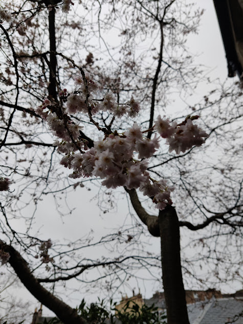 The morning was a blur as usual. Falls averted, misunderstandings between the regulars cleared up, the wanderers who would not settle. “Walking with purpose” is the current term I read in the form that I have to send to the council every year – I will have to submit that in a few weeks and I have not even started it yet. When the music started I loaded up the trolley and wheeled the dishes to the kitchen, rolling down the hatch to avoid disturbing everybody else. Ishbel came through to help, and we nattered away as usual. She talked more than dried, as is her habit. She had read something on the BBC News app about global warming and commented on the cherry tree visible through the kitchen window, in the garden of the Georgian house next door. The whole tree was ablaze with pink blossom. Months early. Not just the new shoots. No arguing with that. John, who is a keen gardener and helps out at the community garden project, confirmed this when he came in to escape the strains of “We’ll Meet Again”. I seemed to be doing everything, and the dishwasher had stopped working. I would need to report it. Another email to draft. And everyone was talking, that awful singing just would not stop and the violin was flat. I snapped and bawled out John and Ishbel, and wondered if we should have called an ambulance for the vomiter who was lying stretched out across three folding chairs, an accident waiting to happen. I worried that I would need to fill out an incident form.