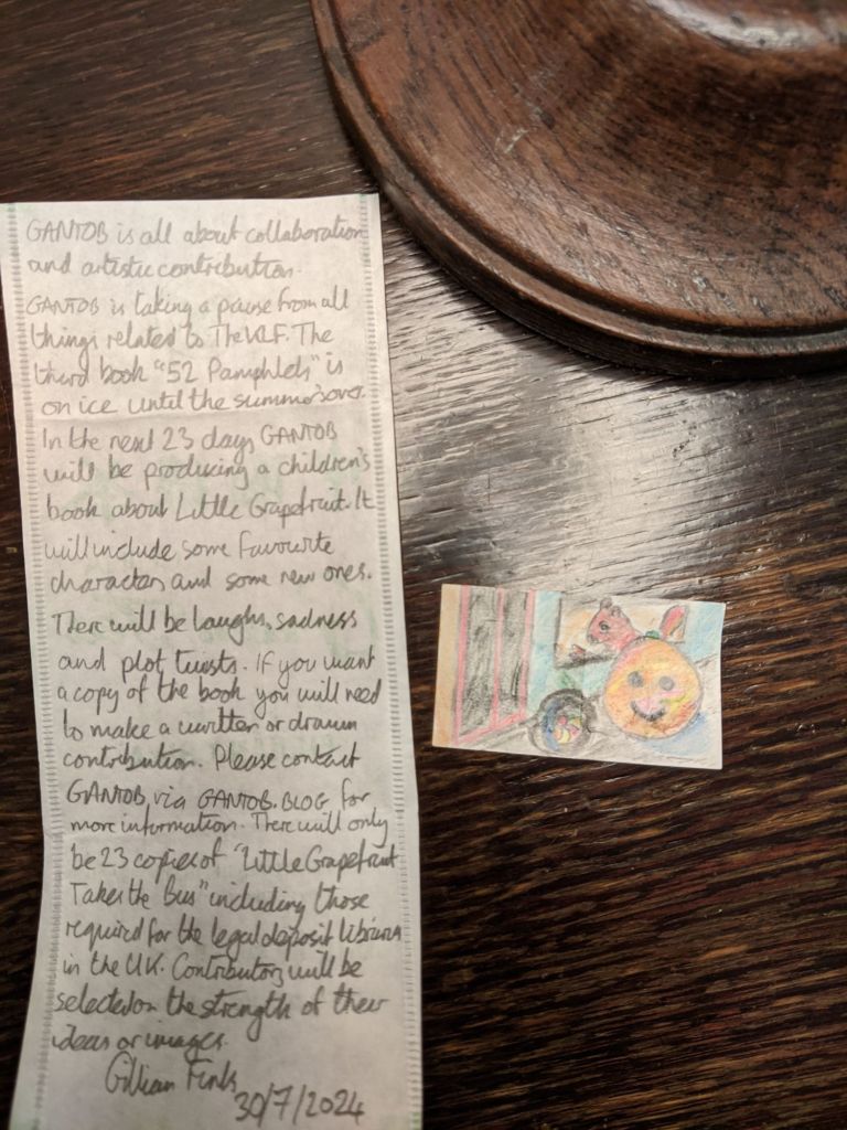 I have shared the early draft posts for this Little Grapefruit story with The Benefaktor and he has asked that the full 23 part series, issued over 23 days, is prepared for a book on the GANTOB Books Little Grapefruit imprint. Copies will be given to people who contribute words or art to the book. Email or direct message GANTOB for more.