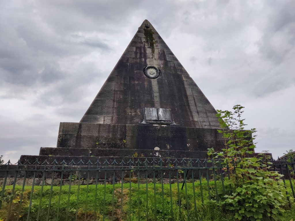 In a series of coincidences, there are other Bill (or at least William) Drummonds in this New Covenanters diversion, on both sides. William Drummond, 1st Viscount of Strathallan (1617-1688) and Sir Thomas “Tam” Dalyell of the Binns(*)  (1615-1685) were commanders of the Scottish Royal Army fighting against the Covenanter dissidents in the Battle of Rullion Green, 1666.  More strikingly, another William Drummond (1793-1888) raised two monuments close to Stirling Castle. The Martyrs Memorial, in the Old Town Cemetery, features a white marble statue of the two Margarets and Agnes Wilson (Margaret’s younger sister who was ultimately spared) under a protective cupola. In the neighbouring Drummond Pleasure Ground, the imposing Star Pyramid is dedicated more broadly to all those who suffered martyrdom in the cause of civil and religious liberty in Scotland. The Stirling Drummond family had interests in agriculture, explored Africa (though I cannot be sure that they reached the Congo), and established the Drummond Tract Enterprise, famed for their pamphlets (albeit of a religious nature). Presumably the pyramid in the Drummond Pleasure Ground has been pointed out to Bill, along with any number of coincidences relating to Bill or William Drummonds from across the world and throughout the centuries. It’s a common enough name.