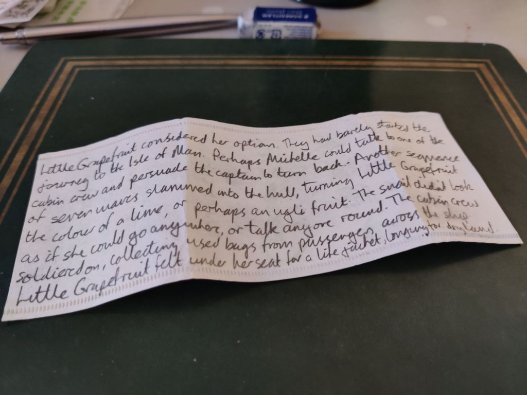 Listening notes: Listen to Lou Reed’s 1982 LP The Blue Mask. Think about blue ocean and a cloudless sky, or mist hanging gently on a calm lake. Drift awhile in an influenza fuelled fever. During the song Waves of Fear imagine Little Grapefruit on a grey-green stormy sea, with no escape.