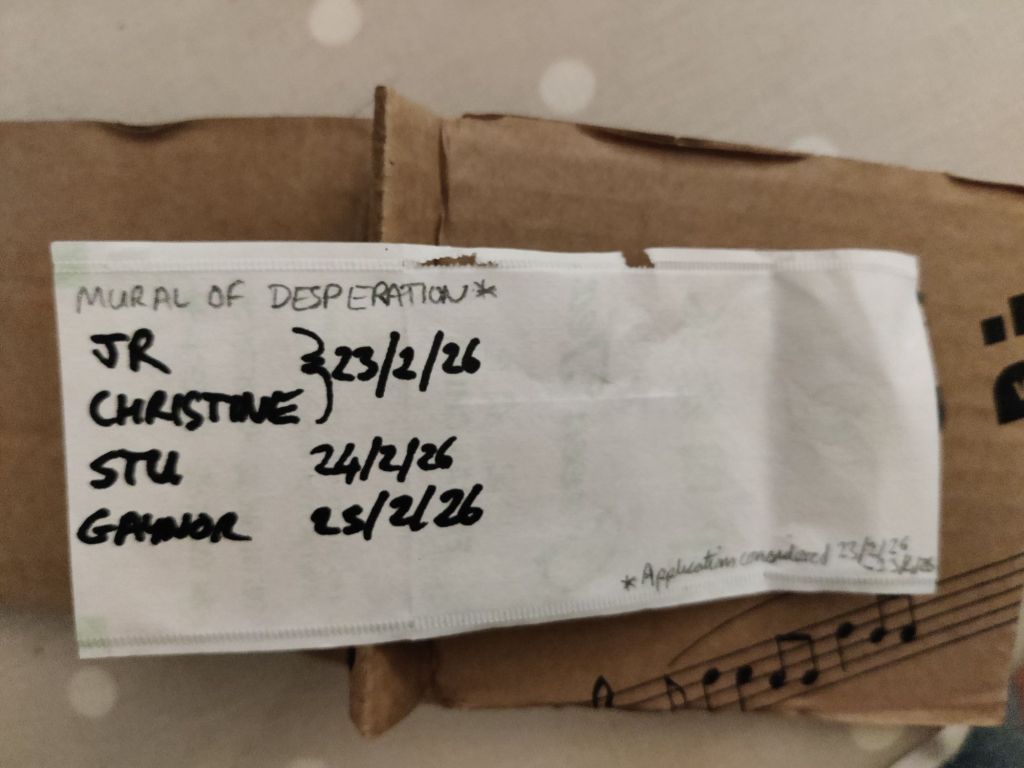 The mural of desperation was established in the final stages of preparing the 5th GANTOB book, Who Killed GANTOB? (GANTOB Books, 2026). The purpose of this construction is explained in that book. If you are an original recipient of the 5th book then you can apply to be added to the wall. This will unlock the 4th book, GANTOB’s 25 Paintings (GANTOB Books, 2025).