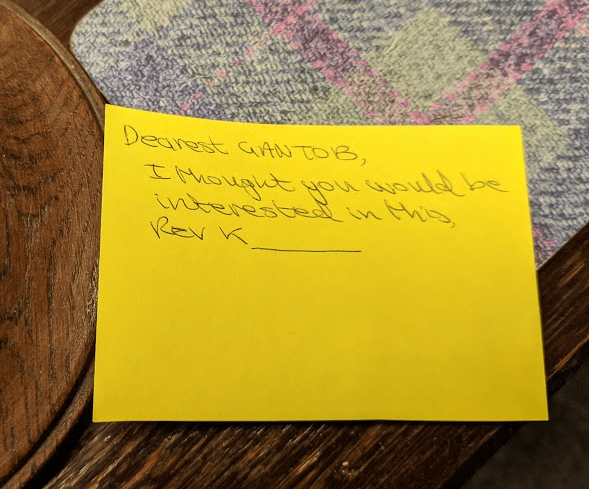 On 4 August 2023 I left Edinburgh Waverley Station and wandered through the streets of Edinburgh, looking for a suitable spot for my first ever book drop. I was on my way to see a few Fringe shows, but rather than heading into the koncentration of venues around the Old Town I headed north to the New Town, taking a photo of a poster for the “Mog The Forgetful Cat” show. I realise in hindsight that I kannot explain my aktions that evening. It is almost as if I was being guided by an external force.