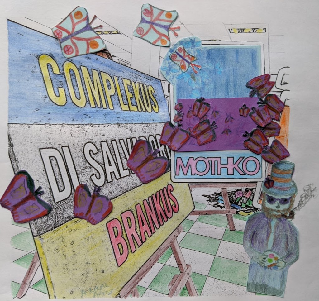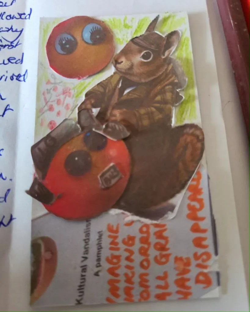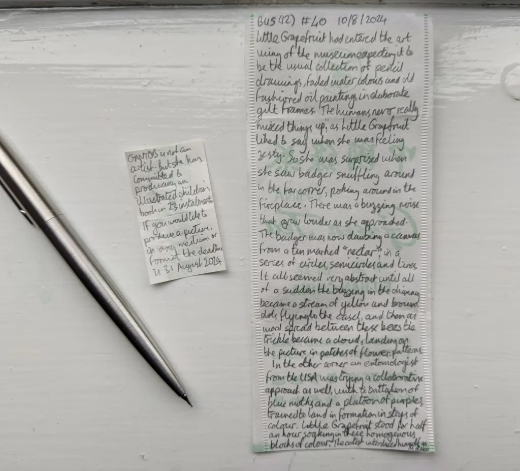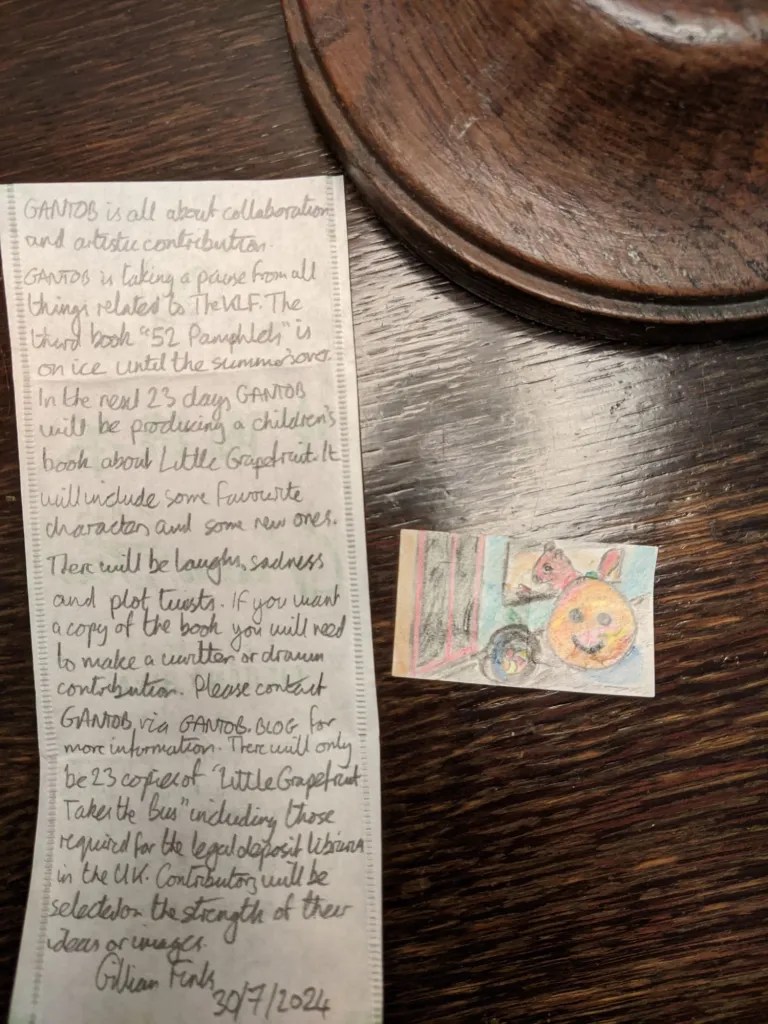 The working version – produced live over 23 days, with contribution from those credited here. The book will have some slight modifications. You can see some of the development of the images, from tiny little teabag labels to full canvases. There will be 23 copies, including those for UK copyright libraries.