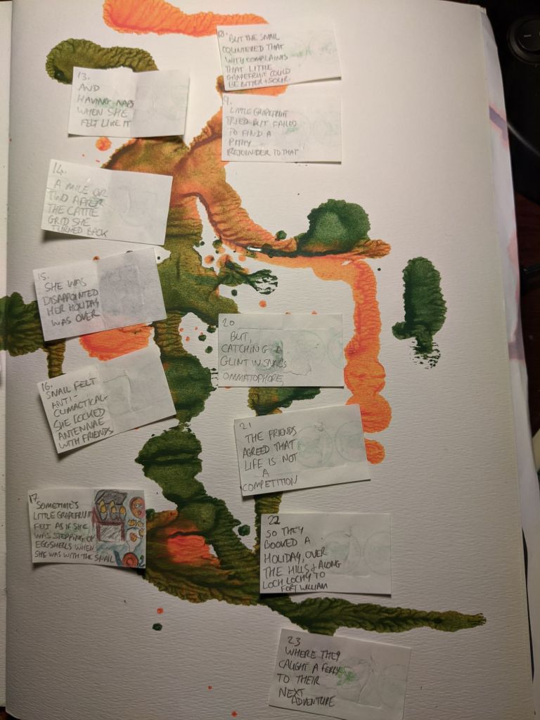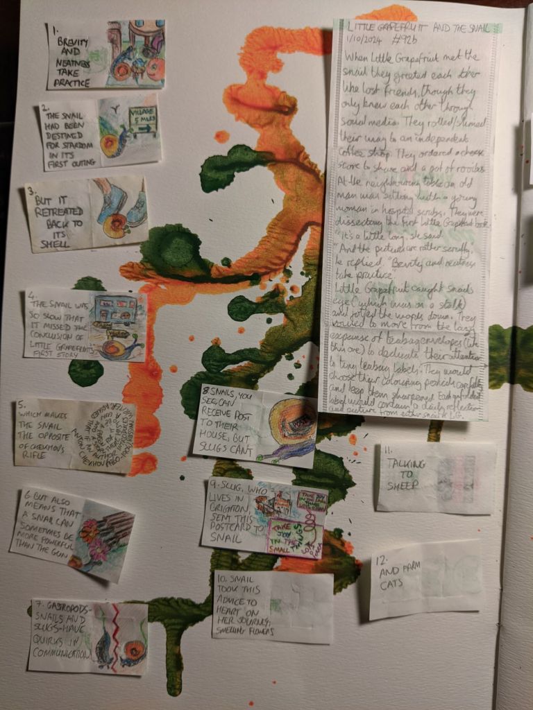 Will you help fill in the gaps in snail’s story? If your picture is selected it will earn you a copy of the forthcoming Little Grapefruit book