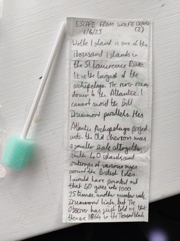 On the long tables between the serving area and the walls of activities, dozens of people are enjoying their soup. Many have already completed the answers to questions required as payment for the soup. I recognise Stu Huggett, Andy Gell and Stephen Dorphin from walking the K-Line into Liverpool on two glorious days, June 2024 (see also the KLFRS’s book The Manual (How To Make A Leyline The Easy Way) (2024)). There are lots of other people we chat to along the way. Everyone is very friendly.