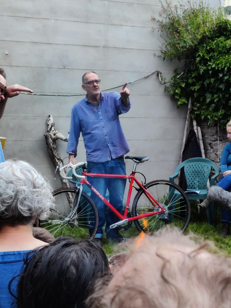 About fifteen of us head to Phoenix pub. Others gather outside the Delia Derbyshire building, admiring Stewy’s work. It is still bucketing it down. We chat about recent Bill Drummond events. I meet a guy who attended a 5-day workshop run by Bill in the Pyrenees a few years ago (I think that this must have been Let Your Lone Ranger Ride, 2019). He describes soup making, bed construction and many other classic Bill Drummond activities. A website describing the workshop puts it like this: “Working in the classroom, outdoors in the landscape, in the studio, through group and individual guidance, this session will embrace the principles of free thought, metacritical assessment of art and music, and avoidance (and simultaneous generation) of absurdity”. Sounds excellent. There is always something new and unexpected to learn about Bill.