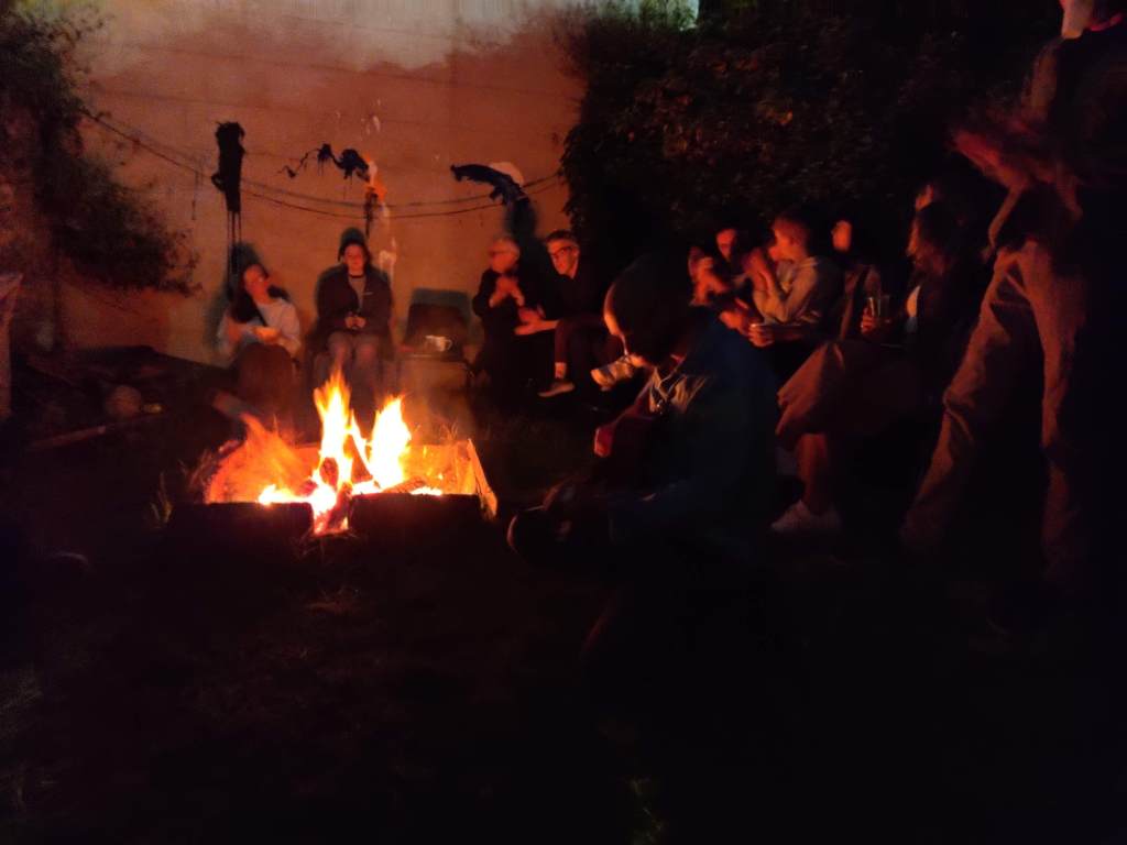 We walk back to the station, dropping Tim off at an underpass that leads to his hotel. On the train we sit with people we recognise from the performance. A brother and sister. She had seen Bill’s graffiti under Spaghetti Junction. He is along for the ride. They have enjoyed the evening, but it was not as polished as the Hear Hard event she attended in London. Kirsty and I have had a whale of a time. There is nothing quite like communal singing and finding your way with others.