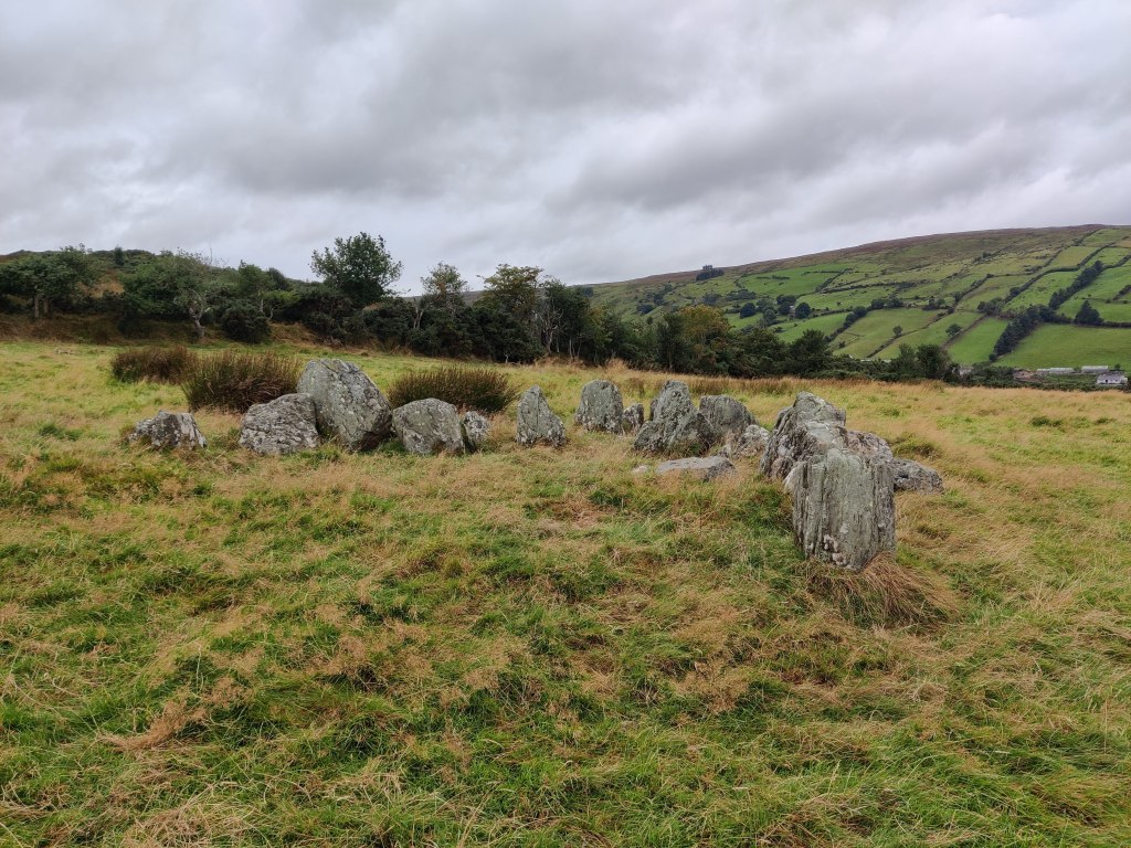 The next day Liz and I skirted the north side of the Cairnsmore of Fleet mountain(*) to visit Newton Stewart, the town where Bill Drummond spent almost a decade as a child. A team of volunteers helped carry Bill’s 25 Paintings across a stream to an island and back, in return for a pebble from Penkiln Burn. Liz and I had a tour of the area afterwards with Jethro Binks, expert archiver of all things KLF and Drummond. He showed us the church where Bill’s dad worked as minister, the manse where the family lived, and Sparling Bridge, named after a rare species of fish that Bill has written about, which returns to the river ever year.