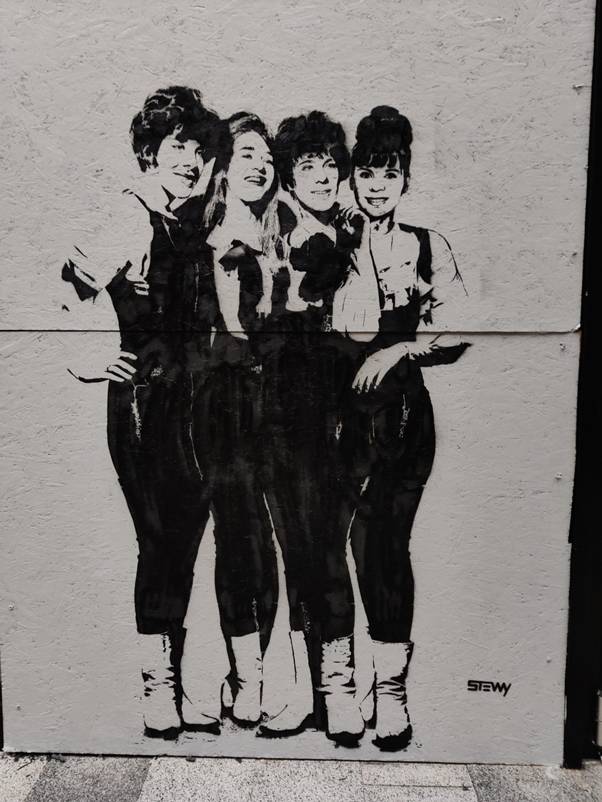 I have to run through the busy corridors of New Street Station for the Coventry train. I am meeting my daughter Kirsty late afternoon. Arriving in Coventry I have time to grab a cup of tea and check out the Delia Derbyshire building, where street artist Stewy is spraying a painting of The Shangri Las beside the front door, Tracy Moberly documenting the process on camera. It is pouring outside. I visit the Herbert Museum, where I learn that Coventry is the birthplace of twinning cities, a topic close to Bill’s heart. There are displays about Lady Godiva and Peeping Tom, Two Tone records and experience of life in the city by different communities.