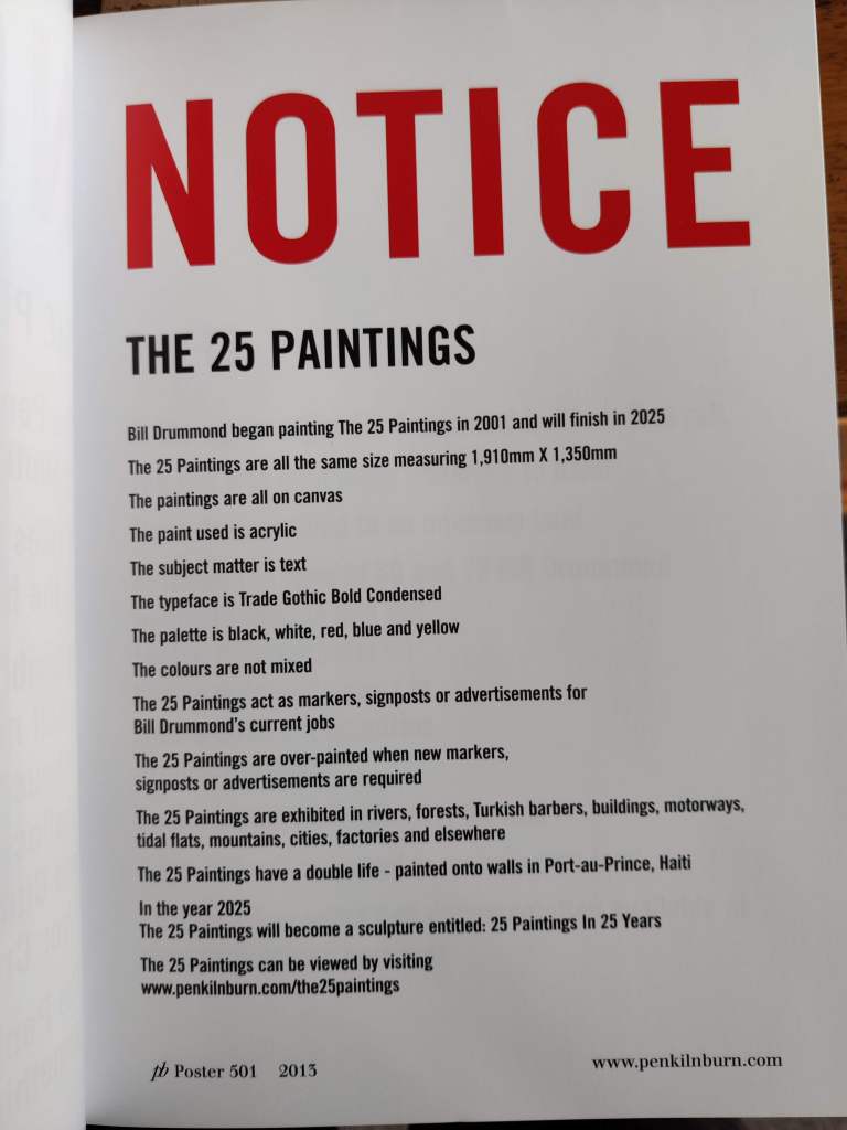 I know of The Tied Hands from Bill’s previous posts. I read about them with passing interest, when in the middle of other things. Something about displaying a poster of tied hands on a website for 40 days(^), in a 12-step tour of the world. Forty is a significant number for Bill, frequently appearing in his work. The idea of a 12-step tour is also familiar from early mentions of The 25 Paintings (e.g. see BILL DRUMMOND WORLD TOUR 2014-2025, pb poster 300, 2013). In another poster he talks of the paintings becoming a sculpture. Or perhaps he means the tour will be the sculpture, like his famous rabbit map of Echo and the Bunnymen’s tour. Or like Antony Gormley’s 6 Times work stretching for miles along the Water of Leith, which I walked last year after reading about it on the Gantob blog.